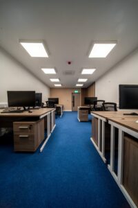 When people have access to bright, open collaborative areas, they naturally come together – sharing ideas, solving problems, and building the kind of team culture that no away day can manufacture. When individuals have quiet, focused zones to do their best thinking, productivity follows. When breakout spaces feel genuinely welcoming, people take the breaks they need and come back sharper for it.